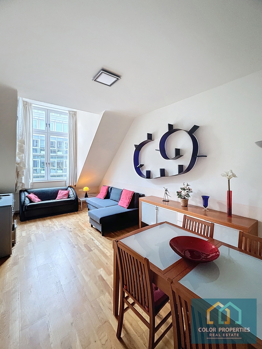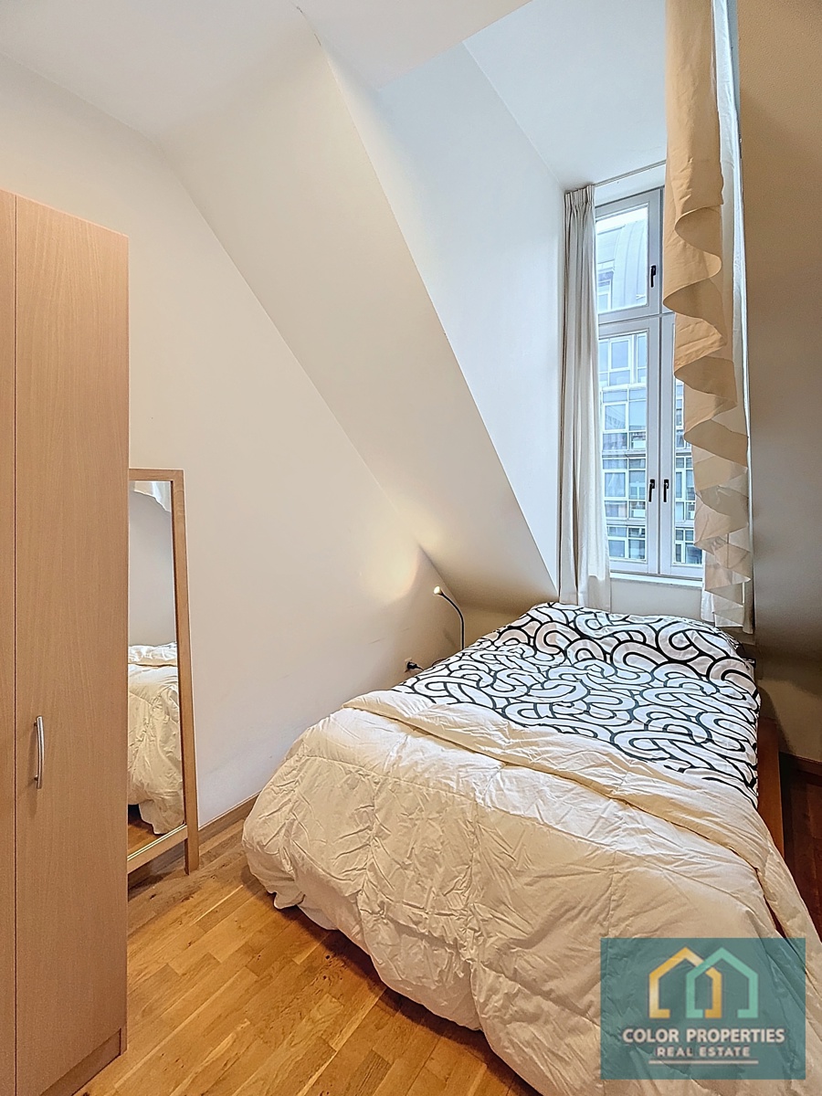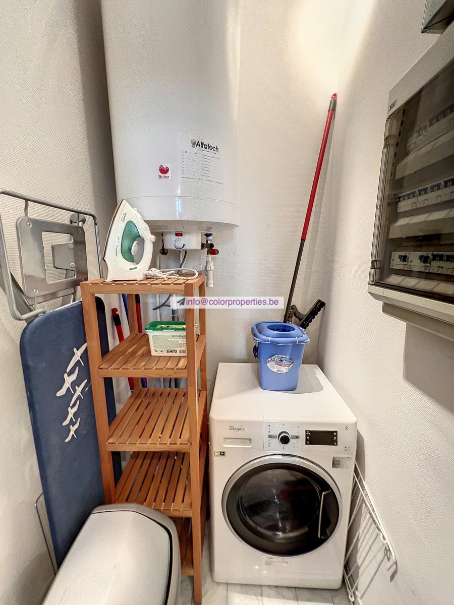 Disponible à l'acte notarié+++ Rue Froissart 105 ! Appartement meublé de haut standing +- 52m2 dans une construction moderne, au 5ème étage avec ascenseur, dans le quartier de l'UE à proximité de la station de métro Schuman, du parc Cinquantenaire et de la Place Jourdan. Hall d'entrée / salon-salle à manger, cuisine équipée USA et buanderie privée. Chambre à coucher avec placards. Salle de bain. Toilette. Provision mensuelle de 130€ pour les charges de l'immeuble, l'entretien et la consommation d'eau froide. Consommations privées de chauffage (électricité), d'eau chaude et d'électricité, sur compteurs individuels. Standing et qualité ! Très bon investissement locatif. VISITES : info@colorproperties.be