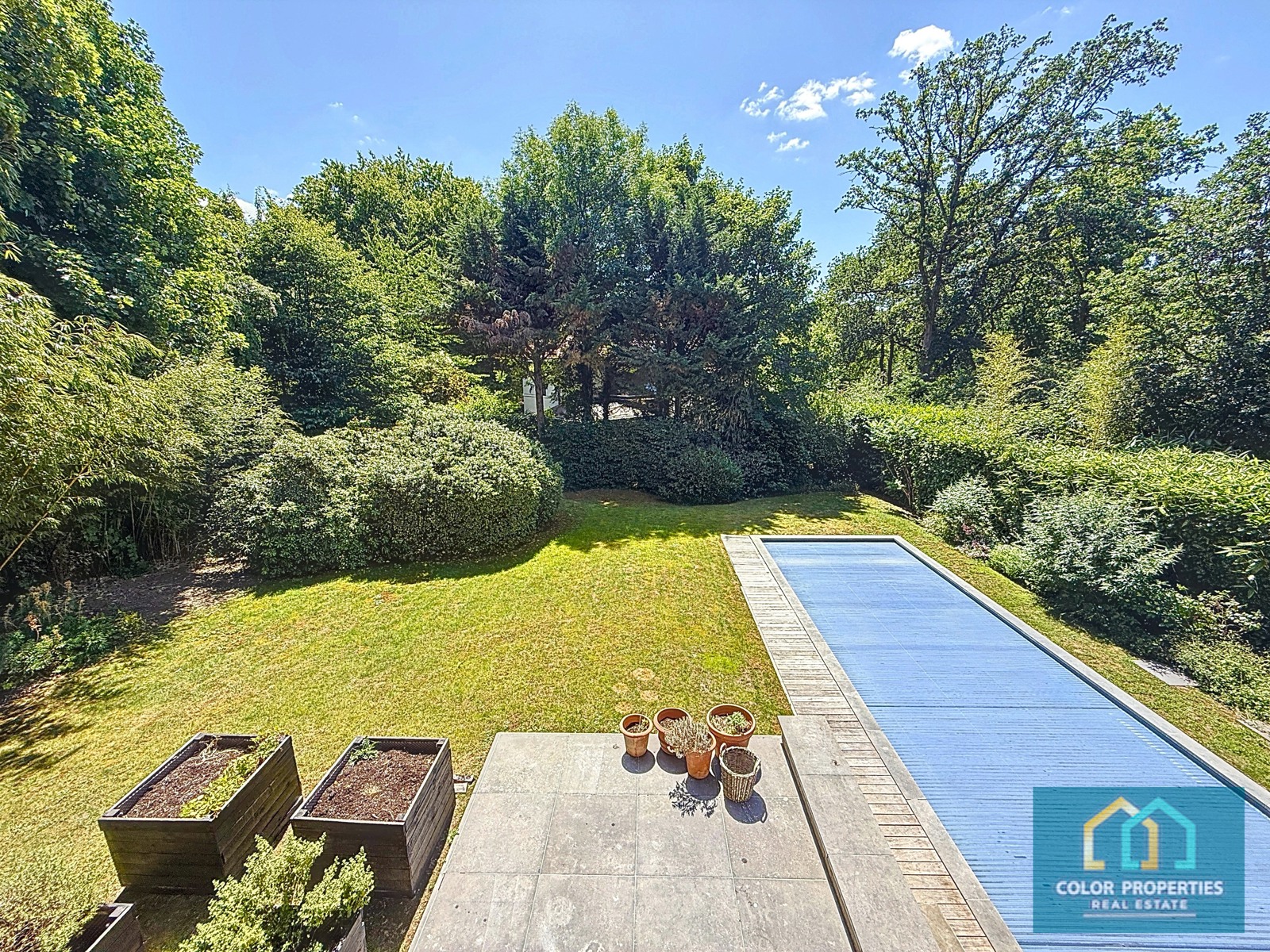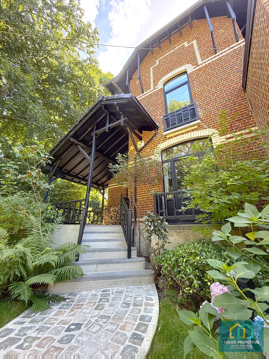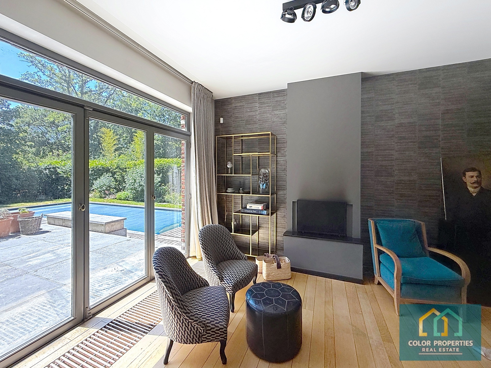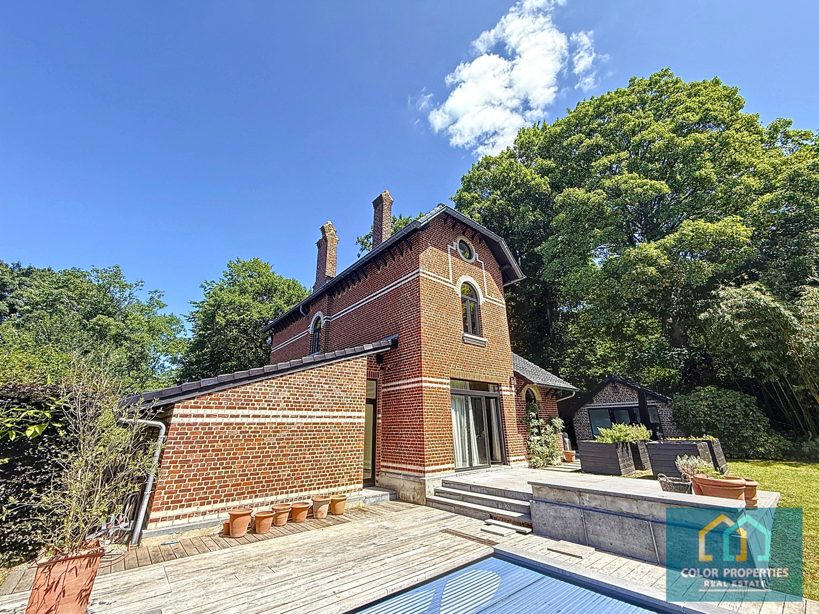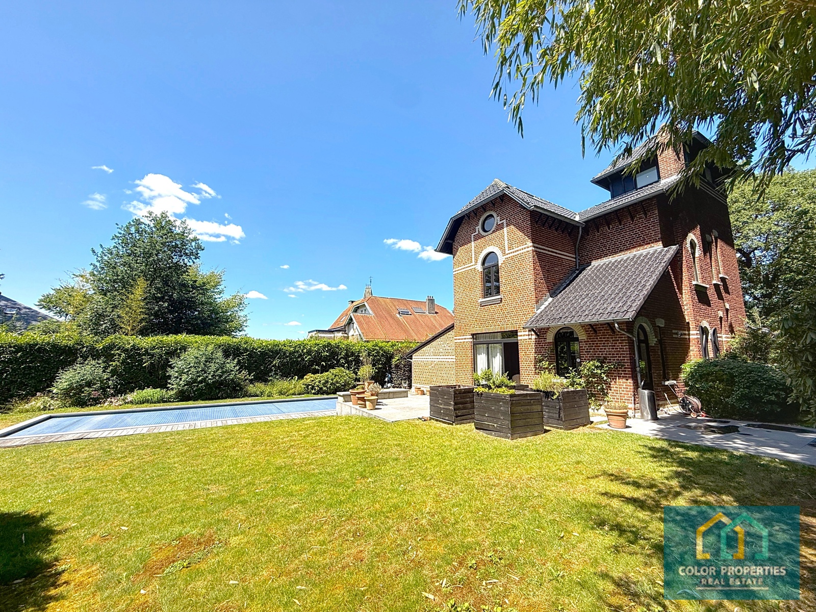 Color Properties vous propose un véritable havre de paix, villa d’exception alliant le charme du passé et le confort contemporain. Libre à l’acte! Cette ancienne demeure bourgeoise de campagne, datant du début du XXème siècle, est bâtie sur un terrain de 13a30ca, dans un cadre verdoyant, lui offrant discrétion et tranquillité. Nichée au coeur d’un des quartiers les plus prisés de Linkebeek, à 2pas du Parc Schavey, des commerces, transports et écoles. Un écrin intemporel, aux détails architecturaux lui conférant une authenticité immuable , tout en la rendant «unique ». La villa de 340m2 ( dont 280m2 utiles) se compose comme suit: Entrée principale par le porche rénové à l’identique. Hall d’entrée avec wc. Magnifiques espaces de séjour ( qui dispose d’un feu ouvert ) et salle à manger, avec accès de plein pied au splendide jardin arboré. La piscine (pourvue d’un échangeur thermique) vient sublimer ce cadre bucolique. Cuisine spacieuse aux électroménagers de gamme et au plan de travail en inox vibré L’annexe construite en 2008, vient compléter ce plateau par 3chambres+ 1SDD-wc-buanderie. Une charmante tourelle aux escaliers aisés, vous mène au 1er étage constitué d’un espace bibliothèque, de la chambre des maîtres et son dressing, d’une seconde chambre ( ou actuellement salle de tv-projection), et d’un salle de bains douche-wc. Le 3ème étage vous offre une énorme pièce polyvalente, une 7ème chambre, et une salle de douche/wc rénovée en 2022. Un bureau extérieur à la maison, rénové, permet de s’isoler pour les moments de concentration. Les caves, un large garage pour 2V+ un espace extérieur pour 3-4V viennent compléter la maison. Chaudière au gaz condensation-double vitrage- Très bon PEB énergétique D. Electricité conforme. Coup de coeur assuré , à visiter dès à présent! info@colorproperties.be